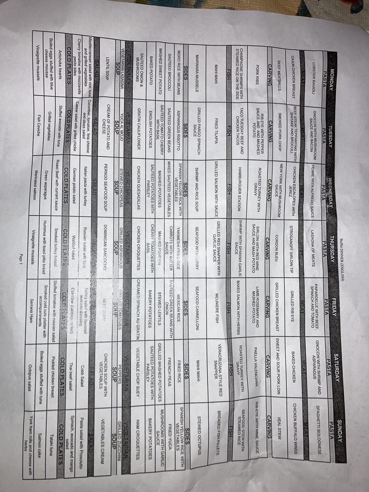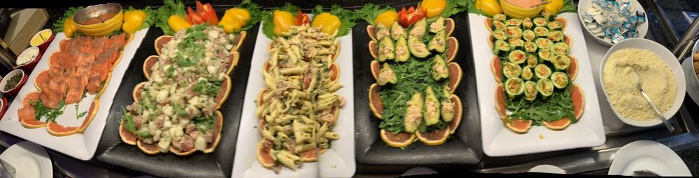 The menu features an impressive array of hot and cold dishes, ensuring satisfaction for every palate. Highlights include delicious grilled potatoes for vegetarians and a selection of succulent meats, complemented by an extensive choice of white wines such as Woodbridge By Robert Mondavi and Cambria Chardonnay. Diners can also enjoy refreshing soft drinks, including Aqua Panna and Red Bull.